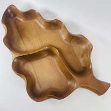 VTG Symco Leaf Bowl Mid Century Modern Cherry Wood Serving Tray Divided Japan