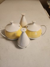 Mid Century Modern California Yellow Ceramic Salt & Pepper Set W/ Stand