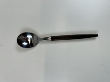Vtg Stainless Steel Brown Faux Wood Inlay Mid Century Modern Design Table Spoon