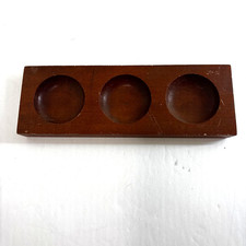 Mid Century Modern Wooden Triple Condiment Dish Nut Cheese Display Dish Brown
