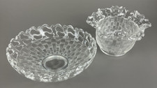 Fenton Basket Weave Open Edge Art Glass Bowl & Rose Vase