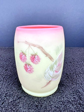 FENTON 85th Anniv Burmese Raspberries and Leaf Tumbler Artist Barbour - 4" Glows