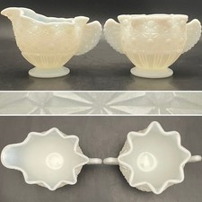 Fenton 2 Piece Milk Glass Daisy Button Angel Wings Creamer & Open Sugar Bowl USA