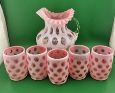 Fenton Cranberry Opalescent Glass Coin Dot Pitcher w/5 tumblers Set 1950's