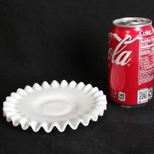 Vtg FENTON ART GLASS HOBNAIL 6" RUFFLED SAUCER WHITE MILK GLASS SCALLOPED EDGE