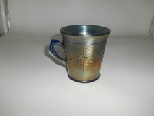 Vintage Fenton Art Glass Blue Orange Tree pattern Carnival Glass 3.5" tall Mug