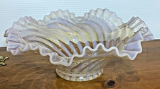 Vintage FENTON? Glass Bowl WHITE OPALESCENT SWIRL Ruffled