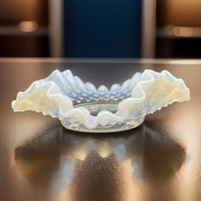 Vtg Fenton Art Glass Pearl Opalescent Hobnail Ruffle Edge Bonbon Nut Candy Dish