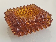 Vintage Fenton Art Glass Amber Pointed Hobnail Square Open Salt Cellar /Tealight
