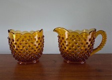 Vintage Fenton Art Glass Amber Hobnail Cream and Sugar Set