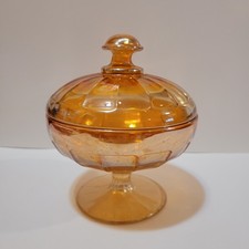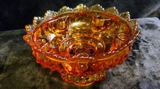 Fenton Art Glass Grecian Gold Carnival Orange Iridescent Candy Dish with Lid 6½"