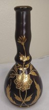 Antique Museum Displayed Amethyst Satin Glass Barber Bottle Gold Floral—8”