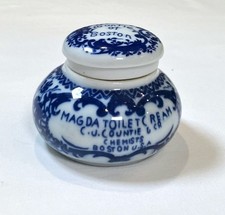 Antique Cobalt Blue Countie of Boston Magda Toilet Porcelain Cream Jar Pot Lid