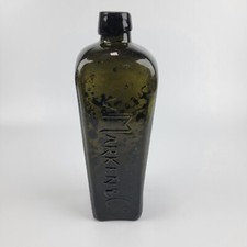 Antique V. Marken & Co. Blackglass Olive Green Gin Bottle