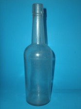 ANTIQUE 3 PIECE MOLD CLEAR GLASS WHISKEY BOTTLE APPLIED TOP 11 1/2'' vtg