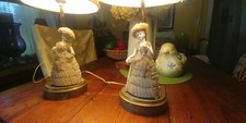 ANTIQUE PORCELAIN BISQUE BOUDOIR FIGURINE LAMPS BASE MARKED S S NY 609