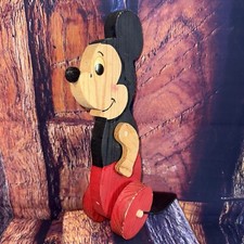 Vintage Disney Mickey Mouse Handmade Wooden Toy Rolling Wheels RARE