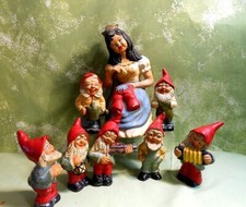 Rare 1930's German Papier-mache 8 1/2" Snow White and Seven Dwarfs - Germany
