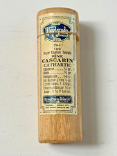 Vintage Montgomery Ward Wood Medicine Advertising Bottle Pink Cascarin Tablets