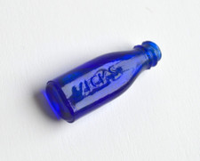 Tiny Antique Cobalt Blue Glass Vicks Drops Bottle - Embossed Advertising