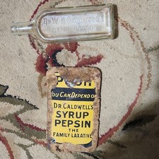 Dr. W.B. Caldwell's Syrup Pepsin Clear Medicine Bottle with Advertising Sign