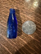 Antique Cobalt Blue Glass Vicks Drops Bottle TINY 1 7/8" Advertising Green Lid