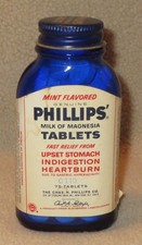 Vintage Phillips Milk Of Magnesia Cobalt Blue: 75-Tablet Bottle ~Advertising