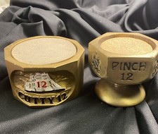 2 Vintage Bottle Pedestals Advertising Pinch 12 Yr Old Scotch Whiskey & Cutty 12