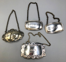 Set of 4 vintage Silverplated Liquor Labels, misc. 2", gently used