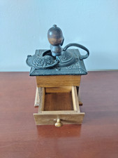 Antique Wood Coffee Bean Burr Grinder Mill Manual Cast Iron Wood Hand Crank