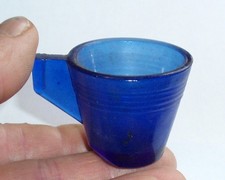 RARE VERY SMALL PRIMITIVE VINTAGE ANTIQUE BLUE GLASS MEASURING CUP / MEASURE