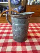 Antique Tin Liquor Measuring Pitcher 1 Qt 1 Pt Primitive Farmhouse Bar Tool