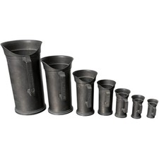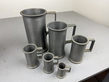 Antique 7 Piece Pewter Pitcher Metric Measuring Cup Set
