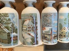 Enesco Antique Measuring Cups With Holder 24k Gold Trim Christmas Scenery