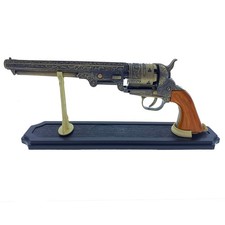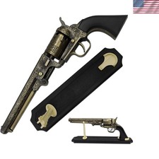 US 13" Decorative Antique Wood Western Style Navy Revolver with Display Stand...