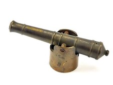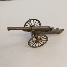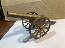 8" BRASS CANNON army military weapon toy wood miniature vtg war gun barrel