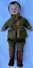 Vtg WWI Doughboy Army Soldier Comp Head & Hands Doll Toy Leather Boots Belt Sash