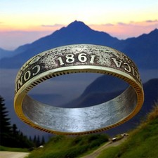 Unique 1861 Confederate States Coin Ring Size 9.5 - Civil War Reenactment