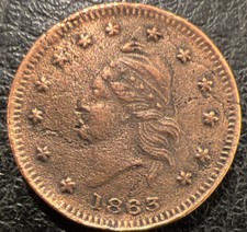 Rare XF 1863 Civil War Token French Liberty Head / Army & Navy