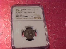 1863 CIVIL WAR TOKEN FOR PUBLIC ACCOMODATION AU 58 BROWN NGC GRADED