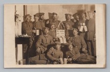 Antique WW1 GERMAN Real Photo RPPC Postcard UNIFORM SOLDIERS DRINKING BEER Stein