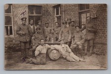 Postcard RPPC WW1 German Soldiers in Uniforms, Drinking Beer, Keg, Beer-Stein