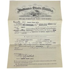 Antique 1916 INDIANA STATE MILITIA Honorable Discharge Certificate NAVAL WWI
