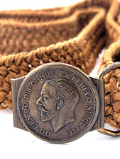 King George Braided Belt Royal Marines WWI Uniform Rare UK Brass Antique