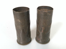 Antique WWI Trench Art Brass Shell Pair Engraved Eagle Verdun Meuse Matching Set