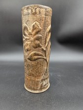 Antique WWI Empty 9 inch Artillery Shell Trench Art Vase Repousse Flower 1918
