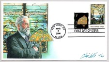 #3749 LOUIS COMFORT TIFFANY LAMP STAMP FDC DESIGNER CHRIS CALLE SIGNED