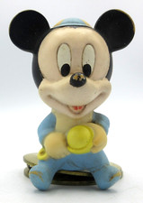 Vintage Mickey Mouse Baby with Rattle and Beanie Hard Rubber Toy Figurine