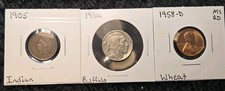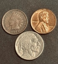 3 US vintage coin lot Indian cent, Buffalo Nickel, BU Wheat free shipping Nice