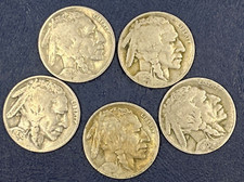 Lot of (5) BUFFALO Indian Head Nickel Coins Partial Dates - All Different Years!